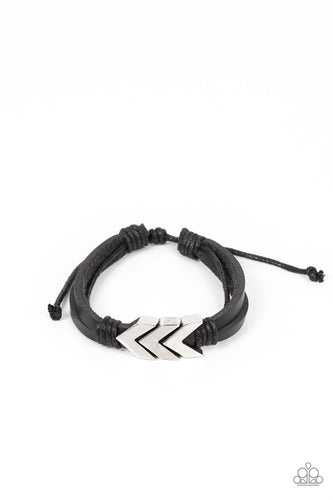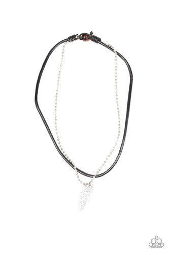 ARROWHEAD ANVIL - PAPARAZZI - SILVER ARROWHEAD BLACK CORD BALL CHAIN URBAN NECKLACE